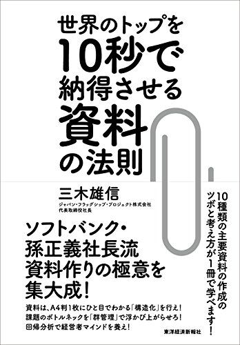 『世界のトップを10秒で納得させる資料の法則』三木雄信 世界のトップを10秒で納得させる資料の法則 作者: 三木雄信 出版社/メーカー: 東洋経済新報社 発売日: 2015/05/01 メディア: 単行本 本の目次 業務処理報告書―群管理でボトルネックを見つけ出す売上報…